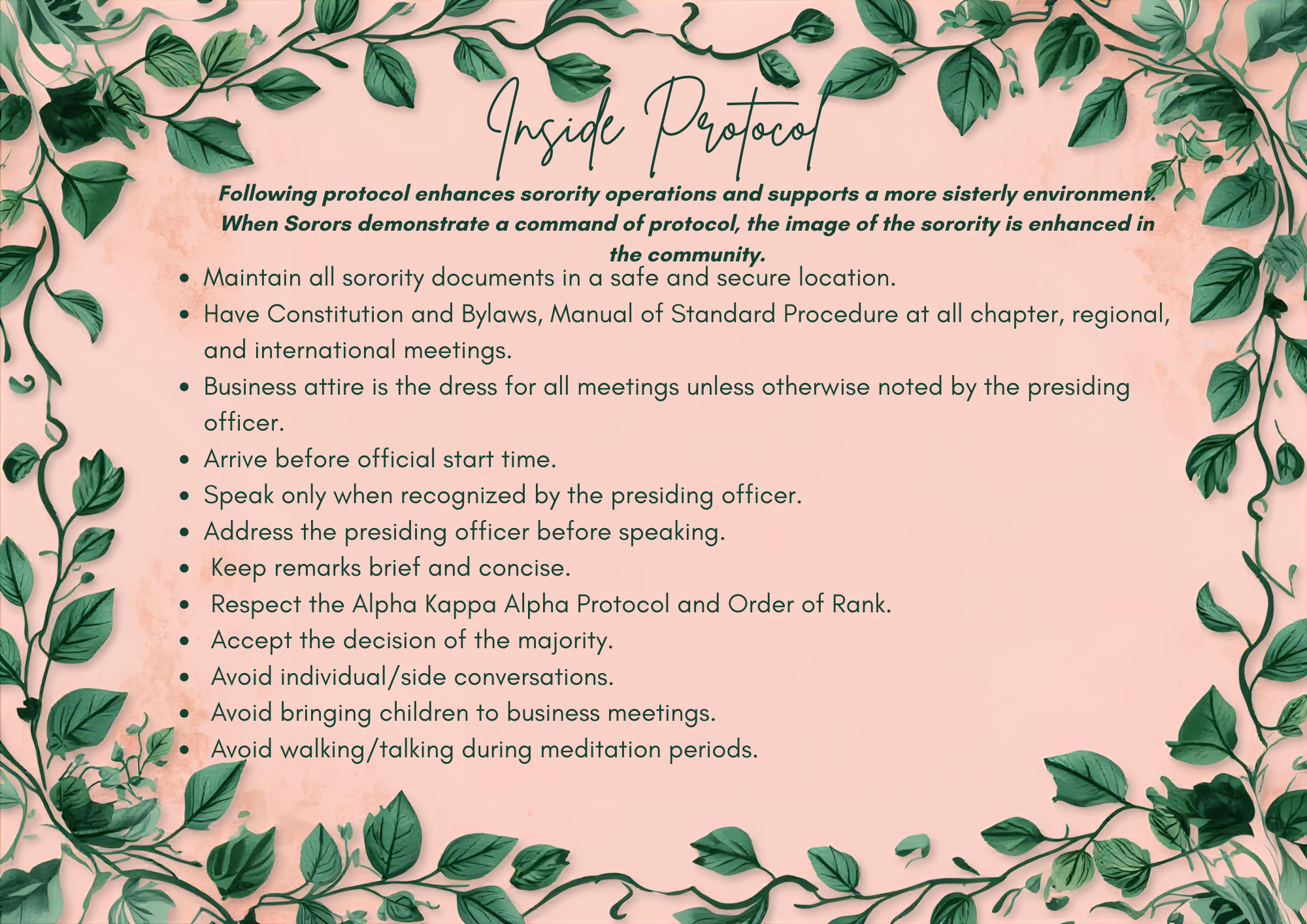 is the place where the Protocol Committee will share the do's and don'ts of protocol at the Chapter, Region, and International levels.